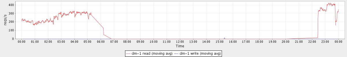 avg(dm-1 read) = 78.27 avg(dm-1 write) = 0.13