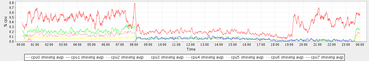 avg(cpu0) = 0.34 avg(cpu1) = 0.03 avg(cpu2) = 0.11 avg(cpu3) = 0.03 avg(cpu4) = 0.00 avg(cpu5) = 0.00 avg(cpu6) = 0.08 avg(cpu7) = 0.00