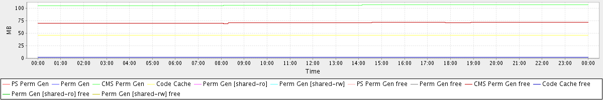 avg(PS Perm Gen) = 0.00 avg(Perm Gen) = 0.00 avg(CMS Perm Gen) = 105.71 avg(Code Cache) = 45.88 avg(Perm Gen [shared-ro]) = 0.00 avg(Perm Gen [shared-rw]) = 0.00 avg(PS Perm Gen free) = 0.00 avg(Perm Gen free) = 0.00 avg(CMS Perm Gen free) = 70.66 avg(Code Cache free) = 2.00 avg(Perm Gen [shared-ro] free) = 0.00 avg(Perm Gen [shared-rw] free) = 0.00
