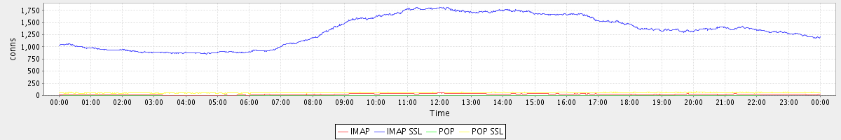 avg(IMAP) = 24.38 avg(IMAP SSL) = 1332.42 avg(POP) = 0.05 avg(POP SSL) = 56.67