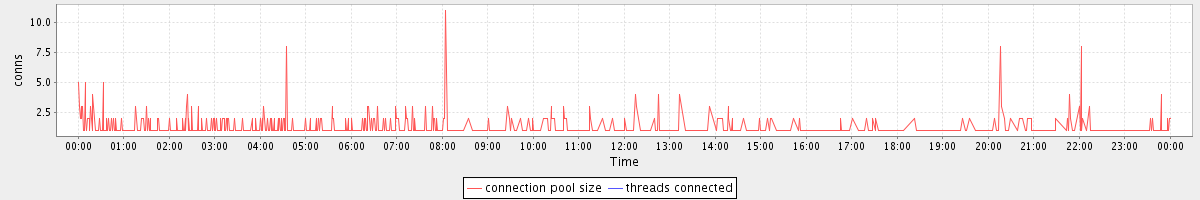 avg(connection pool size) = 0.74 avg(threads connected) = 0.00