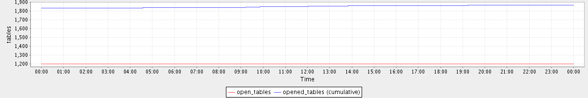 avg(open_tables) = 1199.90 avg(opened_tables (cumulative)) = 1849.14