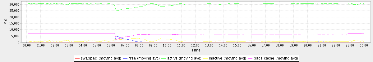 avg(swapped) = 0.23 avg(free) = 298.55 avg(active) = 30077.58 avg(inactive) = 1082.11 avg(page cache) = 6497.04