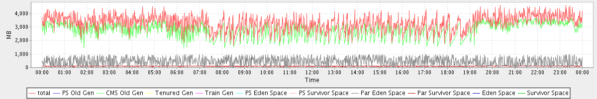 avg(total) = 3301.83 avg(PS Old Gen) = 0.00 avg(CMS Old Gen) = 2748.14 avg(Tenured Gen) = 0.00 avg(Train Gen) = 0.00 avg(PS Eden Space) = 0.00 avg(PS Survivor Space) = 0.00 avg(Par Eden Space) = 459.97 avg(Par Survivor Space) = 93.72 avg(Eden Space) = 0.00 avg(Survivor Space) = 0.00