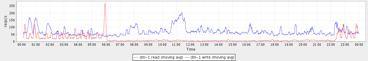 avg(dm-1 read) = 205.70 avg(dm-1 write) = 584.01
