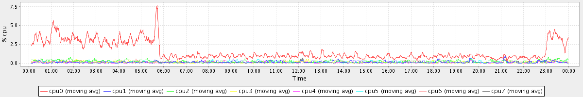 avg(cpu0) = 1.57 avg(cpu1) = 0.14 avg(cpu2) = 0.22 avg(cpu3) = 0.14 avg(cpu4) = 0.08 avg(cpu5) = 0.12 avg(cpu6) = 0.14 avg(cpu7) = 0.09
