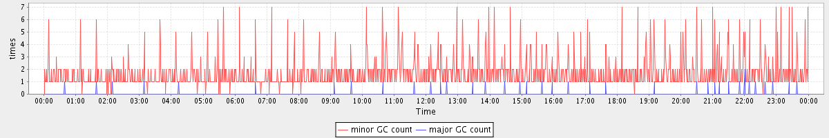 avg(minor GC count) = 1.67 avg(major GC count) = 0.03