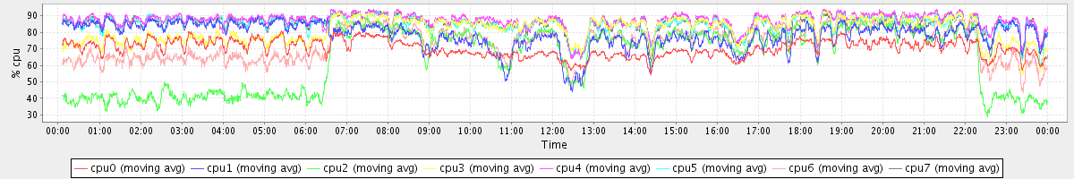 avg(cpu0) = 70.37 avg(cpu1) = 78.51 avg(cpu2) = 64.31 avg(cpu3) = 81.52 avg(cpu4) = 87.20 avg(cpu5) = 85.13 avg(cpu6) = 72.80 avg(cpu7) = 85.12
