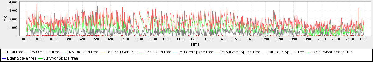 avg(total free) = 1626.19 avg(PS Old Gen free) = 0.00 avg(CMS Old Gen free) = 1087.92 avg(Tenured Gen free) = 0.00 avg(Train Gen free) = 0.00 avg(PS Eden Space free) = 0.00 avg(PS Survivor Space free) = 0.00 avg(Par Eden Space free) = 501.23 avg(Par Survivor Space free) = 37.04 avg(Eden Space free) = 0.00 avg(Survivor Space free) = 0.00