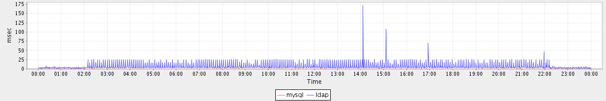 avg(mysql) = 0.21 avg(ldap) = 7.22