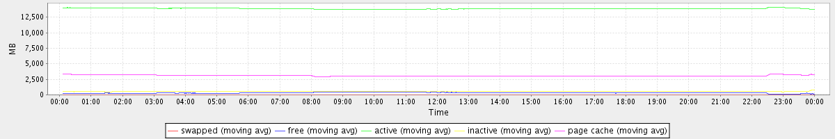 avg(swapped) = 0.23 avg(free) = 315.00 avg(active) = 13888.52 avg(inactive) = 528.05 avg(page cache) = 3084.59