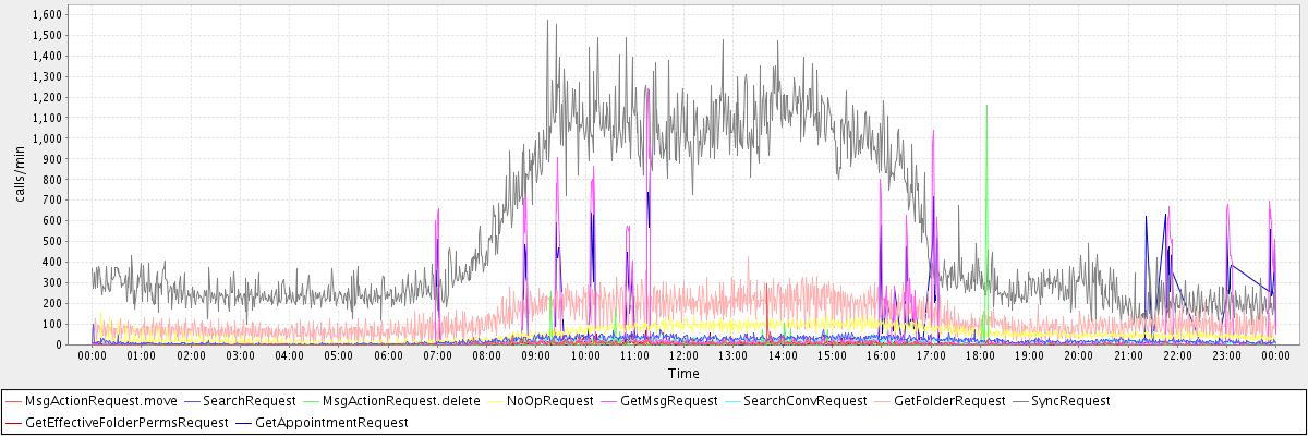 max(MsgActionRequest.move) = 293.00 max(SearchRequest) = 102.00 max(MsgActionRequest.delete) = 1158.00 max(NoOpRequest) = 157.00 max(GetMsgRequest) = 1240.00 max(SearchConvRequest) = 67.00 max(GetFolderRequest) = 428.00 max(SyncRequest) = 1570.00 max(GetEffectiveFolderPermsRequest) = 66.00 max(GetAppointmentRequest) = 872.00