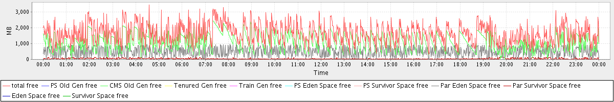 avg(total free) = 1643.87 avg(PS Old Gen free) = 0.00 avg(CMS Old Gen free) = 1107.22 avg(Tenured Gen free) = 0.00 avg(Train Gen free) = 0.00 avg(PS Eden Space free) = 0.00 avg(PS Survivor Space free) = 0.00 avg(Par Eden Space free) = 501.25 avg(Par Survivor Space free) = 35.40 avg(Eden Space free) = 0.00 avg(Survivor Space free) = 0.00