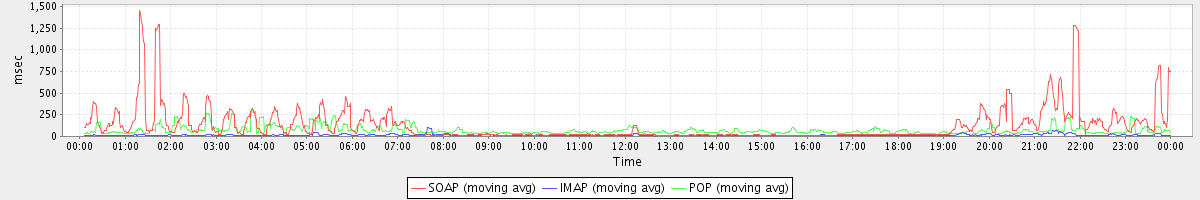 Host zm05.stanford.edu: Mailboxd: Response Time by Client Protocol