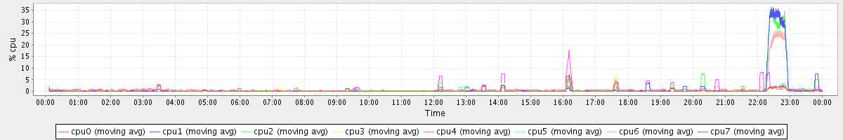 avg(cpu0) = 0.22 avg(cpu1) = 0.95 avg(cpu2) = 1.16 avg(cpu3) = 0.22 avg(cpu4) = 0.86 avg(cpu5) = 0.12 avg(cpu6) = 0.65 avg(cpu7) = 0.15