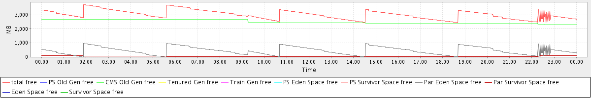 avg(total free) = 3003.01 avg(PS Old Gen free) = 0.00 avg(CMS Old Gen free) = 2507.60 avg(Tenured Gen free) = 0.00 avg(Train Gen free) = 0.00 avg(PS Eden Space free) = 0.00 avg(PS Survivor Space free) = 0.00 avg(Par Eden Space free) = 449.76 avg(Par Survivor Space free) = 45.65 avg(Eden Space free) = 0.00 avg(Survivor Space free) = 0.00