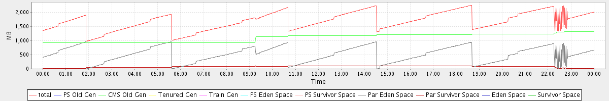 avg(total) = 1689.74 avg(PS Old Gen) = 0.00 avg(CMS Old Gen) = 1102.40 avg(Tenured Gen) = 0.00 avg(Train Gen) = 0.00 avg(PS Eden Space) = 0.00 avg(PS Survivor Space) = 0.00 avg(Par Eden Space) = 512.74 avg(Par Survivor Space) = 74.60 avg(Eden Space) = 0.00 avg(Survivor Space) = 0.00