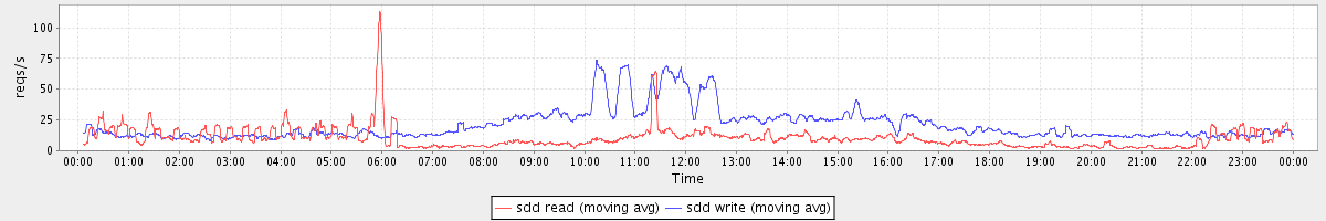 avg(sda1 read) = 23.69 avg(sda1 write) = 46.23