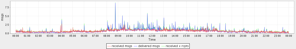 avg(received msgs) = 0.69 avg(delivered msgs) = 0.70 avg(received x rcpts) = 0.87