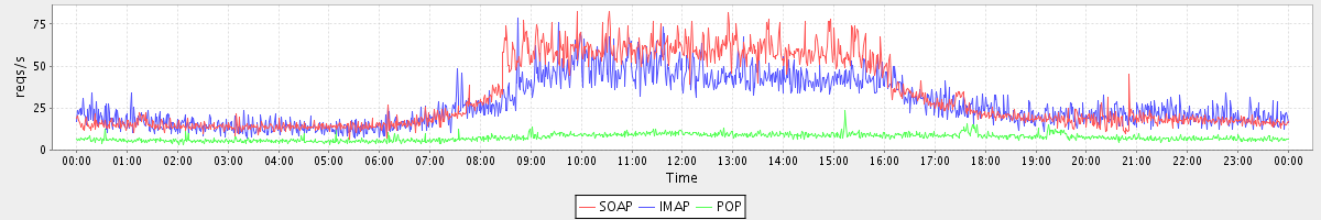 Host zm06.stanford.edu: Mailboxd: Request Rate by Client Protocol