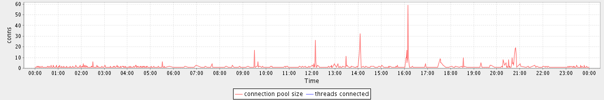 avg(connection pool size) = 0.95 avg(threads connected) = 0.00