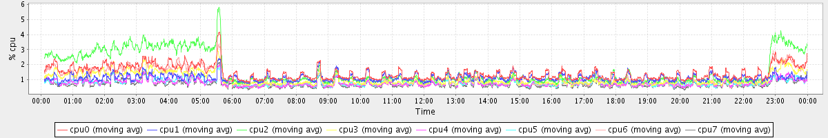 avg(cpu0) = 0.12 avg(cpu1) = 0.01 avg(cpu2) = 0.06 avg(cpu3) = 0.01 avg(cpu4) = 0.00 avg(cpu5) = 0.00 avg(cpu6) = 0.03 avg(cpu7) = 0.00