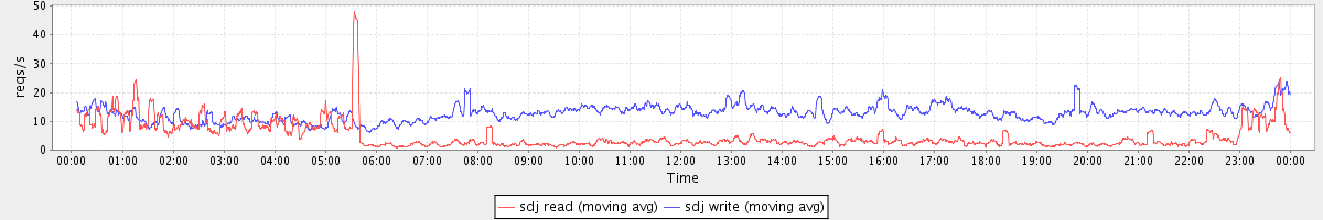 avg(sdj read) = 47.44 avg(sdj write) = 202.18
