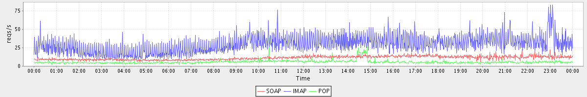 Host zm05.stanford.edu: Mailboxd: Request Rate by Client Protocol