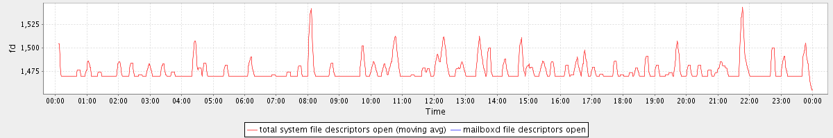 avg(total system file descriptors open) = 1475.72 avg(mailboxd file descriptors open) = 0.00