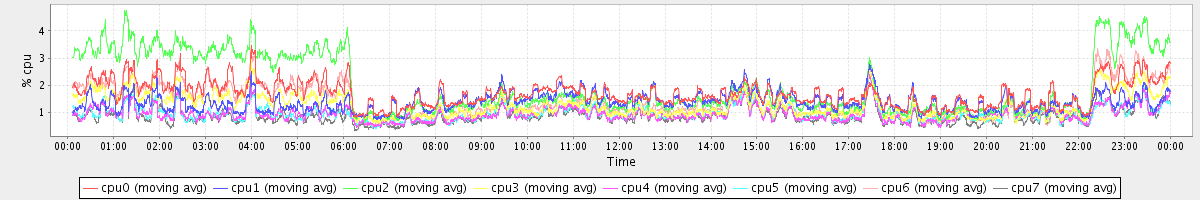 avg(cpu0) = 1.79 avg(cpu1) = 0.20 avg(cpu2) = 0.27 avg(cpu3) = 0.16 avg(cpu4) = 0.12 avg(cpu5) = 0.14 avg(cpu6) = 0.19 avg(cpu7) = 0.11