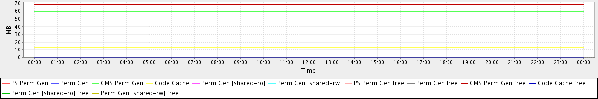avg(PS Perm Gen) = 0.00 avg(Perm Gen) = 0.00 avg(CMS Perm Gen) = 59.62 avg(Code Cache) = 13.52 avg(Perm Gen [shared-ro]) = 0.00 avg(Perm Gen [shared-rw]) = 0.00 avg(PS Perm Gen free) = 0.00 avg(Perm Gen free) = 0.00 avg(CMS Perm Gen free) = 68.38 avg(Code Cache free) = 0.13 avg(Perm Gen [shared-ro] free) = 0.00 avg(Perm Gen [shared-rw] free) = 0.00