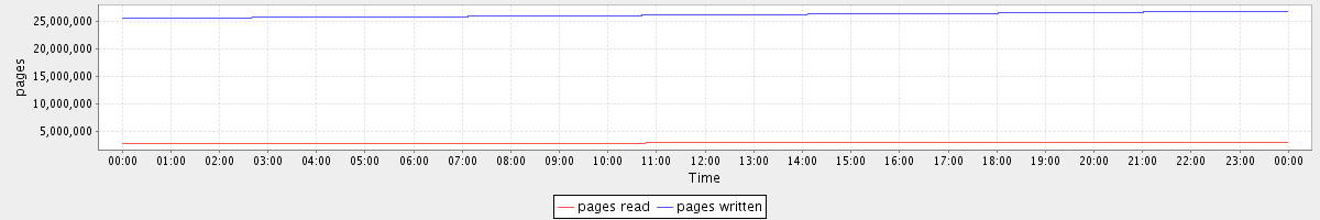 avg(pages read) = 2877269.07 avg(pages written) = 26133056.02