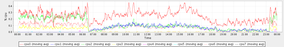 avg(cpu0) = 0.24 avg(cpu1) = 0.05 avg(cpu2) = 0.11 avg(cpu3) = 0.02 avg(cpu4) = 0.00 avg(cpu5) = 0.00 avg(cpu6) = 0.07 avg(cpu7) = 0.00