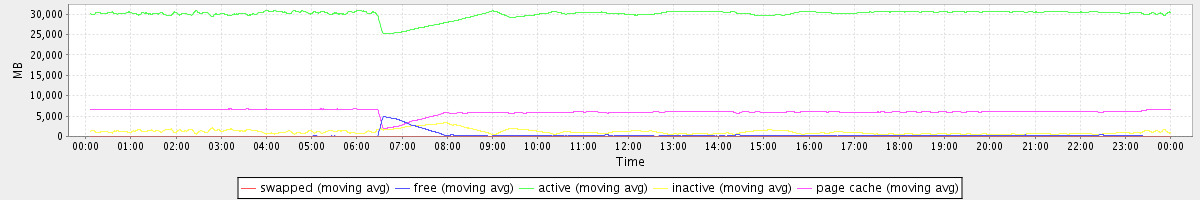 avg(swapped) = 0.23 avg(free) = 299.80 avg(active) = 30049.54 avg(inactive) = 1115.75 avg(page cache) = 6060.99