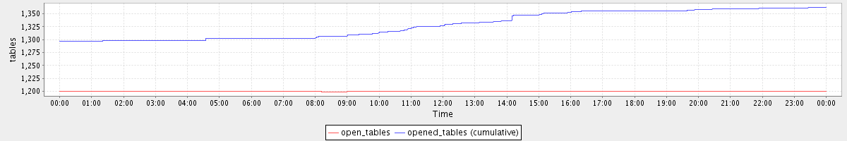 avg(open_tables) = 1199.97 avg(opened_tables (cumulative)) = 1328.59