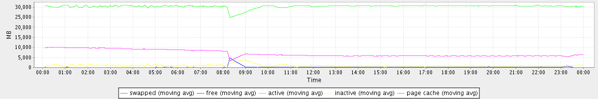 avg(swapped) = 0.23 avg(free) = 216.03 avg(active) = 30263.82 avg(inactive) = 952.31 avg(page cache) = 6980.44