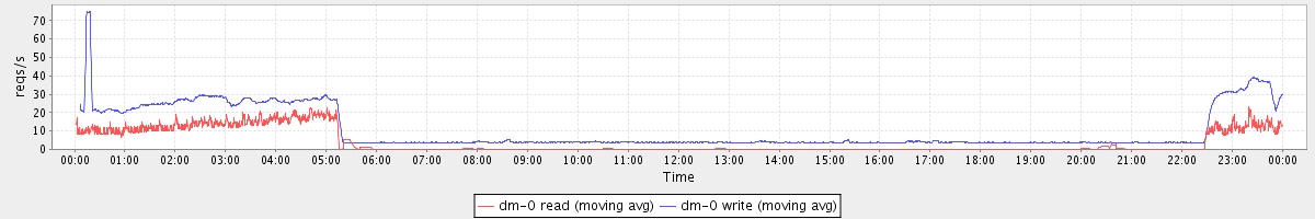 avg(dm-1 read) = 78.07 avg(dm-1 write) = 0.13