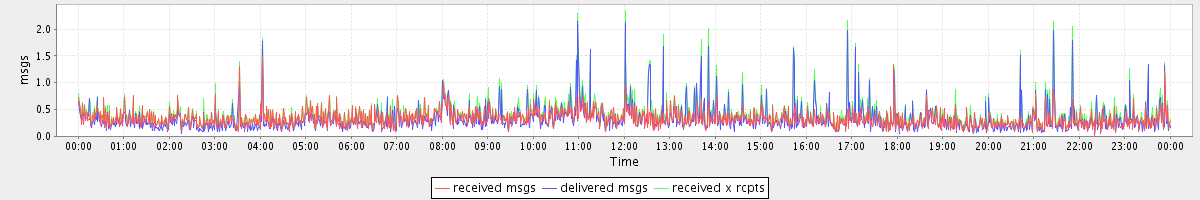avg(received msgs) = 0.33 avg(delivered msgs) = 0.31 avg(received x rcpts) = 0.40