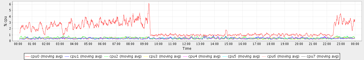 avg(cpu0) = 0.12 avg(cpu1) = 0.01 avg(cpu2) = 0.11 avg(cpu3) = 0.03 avg(cpu4) = 0.00 avg(cpu5) = 0.00 avg(cpu6) = 0.05 avg(cpu7) = 0.00