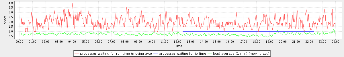 avg(processes waiting for run time) = 0.89 avg(processes waiting for io time) = 0.00 avg(load average (1 min)) = 0.72