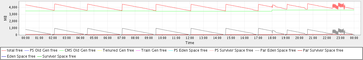 avg(total free) = 4013.00 avg(PS Old Gen free) = 0.00 avg(CMS Old Gen free) = 3479.79 avg(Tenured Gen free) = 0.00 avg(Train Gen free) = 0.00 avg(PS Eden Space free) = 0.00 avg(PS Survivor Space free) = 0.00 avg(Par Eden Space free) = 466.77 avg(Par Survivor Space free) = 66.44 avg(Eden Space free) = 0.00 avg(Survivor Space free) = 0.00