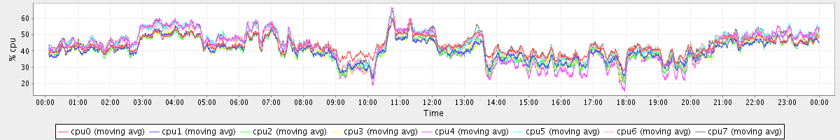 avg(cpu0) = 43.23 avg(cpu1) = 40.64 avg(cpu2) = 40.07 avg(cpu3) = 40.24 avg(cpu4) = 41.97 avg(cpu5) = 43.60 avg(cpu6) = 44.02 avg(cpu7) = 44.70
