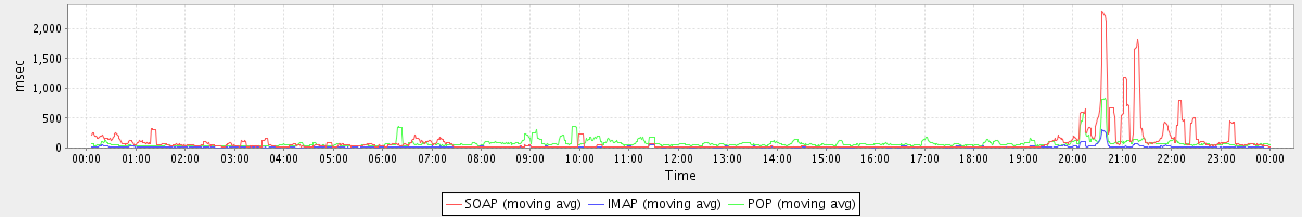 Host zm04.stanford.edu: Mailboxd: Response Time by Client Protocol