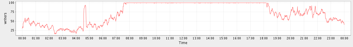 avg(user) = 17.68 avg(sys) = 1.67 avg(idle) = 71.49 avg(iowait) = 8.58 avg(nice) = 0.00 avg(irq) = 0.06 avg(softirq) = 0.52