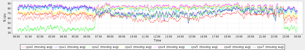 avg(cpu0) = 64.59 avg(cpu1) = 74.56 avg(cpu2) = 59.88 avg(cpu3) = 77.81 avg(cpu4) = 83.87 avg(cpu5) = 79.98 avg(cpu6) = 67.62 avg(cpu7) = 79.92