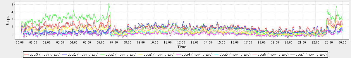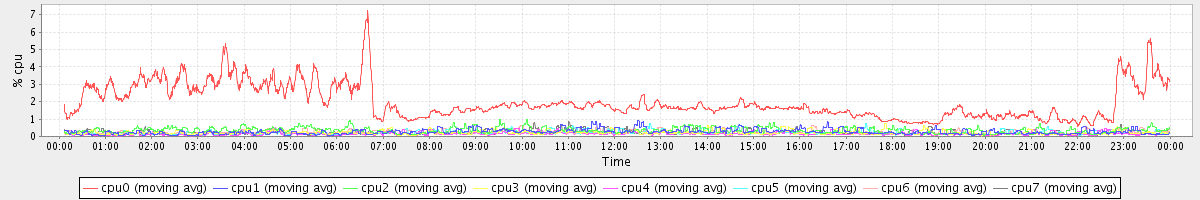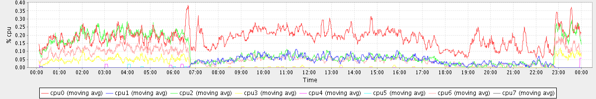 avg(cpu0) = 0.18 avg(cpu1) = 0.03 avg(cpu2) = 0.10 avg(cpu3) = 0.02 avg(cpu4) = 0.00 avg(cpu5) = 0.00 avg(cpu6) = 0.06 avg(cpu7) = 0.00
