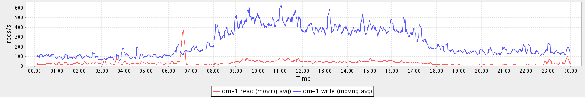avg(dm-1 read) = 417.21 avg(dm-1 write) = 1367.28