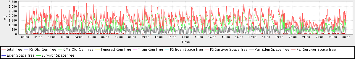 avg(total free) = 1604.95 avg(PS Old Gen free) = 0.00 avg(CMS Old Gen free) = 1058.88 avg(Tenured Gen free) = 0.00 avg(Train Gen free) = 0.00 avg(PS Eden Space free) = 0.00 avg(PS Survivor Space free) = 0.00 avg(Par Eden Space free) = 493.54 avg(Par Survivor Space free) = 52.52 avg(Eden Space free) = 0.00 avg(Survivor Space free) = 0.00