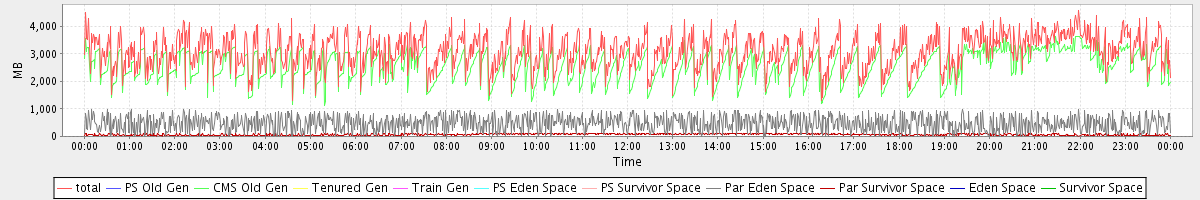 avg(total) = 3100.49 avg(PS Old Gen) = 0.00 avg(CMS Old Gen) = 2561.12 avg(Tenured Gen) = 0.00 avg(Train Gen) = 0.00 avg(PS Eden Space) = 0.00 avg(PS Survivor Space) = 0.00 avg(Par Eden Space) = 471.33 avg(Par Survivor Space) = 68.04 avg(Eden Space) = 0.00 avg(Survivor Space) = 0.00