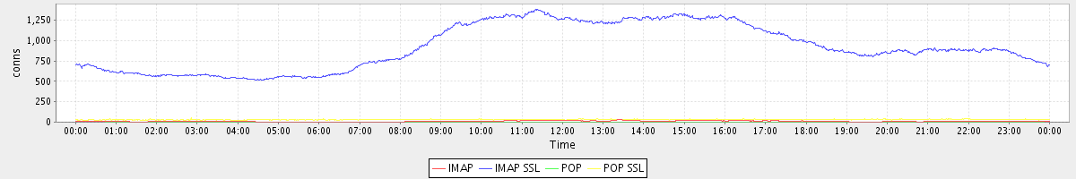 Host zm04.stanford.edu: Mailboxd: Active Connections by Client Protocol